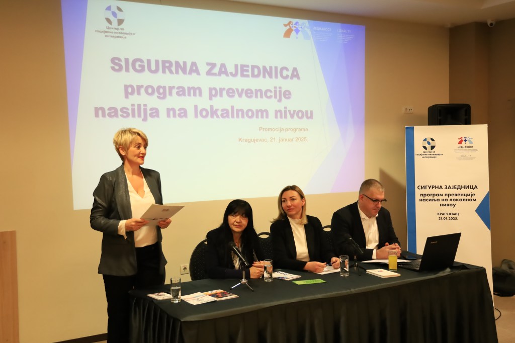 Pod pokroviteljstvom ministarke bez portfelja zadužene za oblast rodne ravnopravnosti, sprečavanja nasilja nad ženama i ekonomskog i političkog osnaživanja žena, Tatjane Macure, u Kragujevcu je predstavljen program „Sigurna zajednica-program prevencije nasilja na lokalnom nivou“. Program je deo šireg projekta „Prevencija porodičnog i vršnjačkog nasilja na teritoriji Topole i okolnih opština“ koji sprovodi Centar za socijalne inovacije i integracije u partnerstvu sa Udruženjem stručnjaka za podršku deci i mladima „Logos T“. Program je osmišljen kao inovativni model prevencije nasilja sa fokusom jačanja lokalnih kapaciteta, edukacije i osnaživanja zajednice.